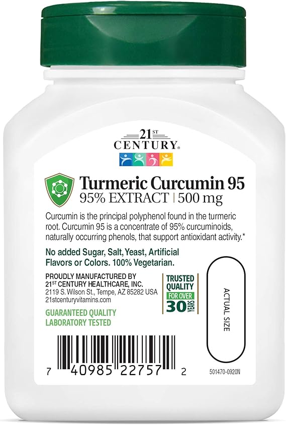 مکمل 21st Century Curcumin 95 با غلظت استاندارد ۹۵ درصد کورکومینوئید ها ، یکی از قوی ترین منابع آنتی اکسیدانی گیاهی محسوب می شود و از سلول ها در برابر رادیکال های آزاد محافظت می کند . کورکومین در مطالعات بالینی توانسته نشانگرهای التهابی را به شکل قابل توجهی کاهش دهد و در بیماران مبتلا به آرتریت روماتوئید عملکردی حتی قوی تر از دارو های ضد التهاب رایج نشان دهد . این ماده فعال با بهبود عملکرد عروق ، کاهش فشار خون و جلوگیری از اکسید شدن چربی ها ، نقشی مهم در پیشگیری از بیماری های قلبی ایفا می کند . کورکومین با افزایش حساسیت سلول ها به انسولین ، تنظیم قند خون و جلوگیری از تجمع چربی سفید ، روند کاهش وزن را تقویت می کند . خاصیت ضدالتهابی و آنتیاکسیدانی آن از نورون های مغزی محافظت کرده و خطر بروز آلزایمر را کاهش می دهد . کورکومین 95 21st Century با 500 میلی گرم عصاره خالص کورکومین در هر وعده ، برای افرادی با التهاب مزمن ، مشکلات مفصلی ، اختلالات متابولیک و نیاز به آنتی اکسیدان قوی مناسب است .