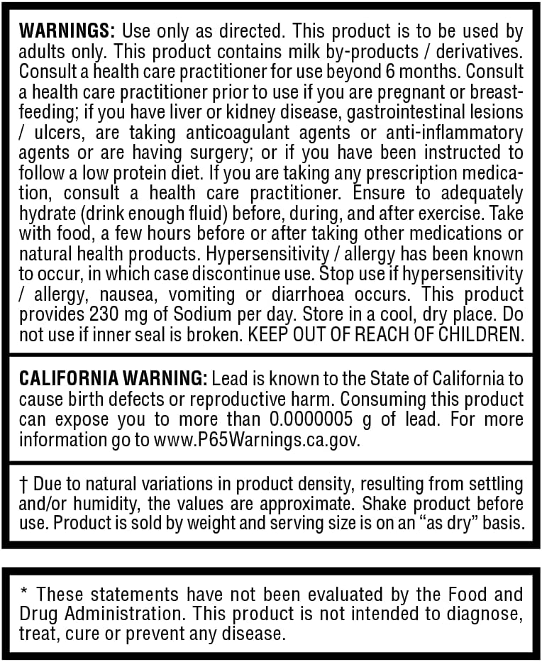 | هر وعده ( 264 گرم ) حاوی 1010 کالری ، 60 گرم پروتئین ، 171 گرم کربوهیدرات ، 9 گرم چربی کل ، 165 میلی گرم کلسترول ، 337 میلی گرم کلسیم ، 4 میلی گرم آهن ، 200 میلی گرم سدیم ، 1003 میلی گرم پتاسیم و EAA و BCAA و 24 نوع ویتامین و مواد معدنی |