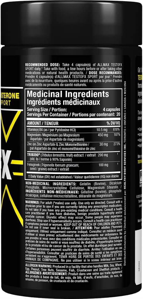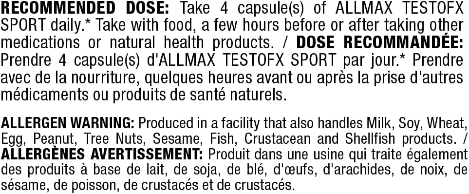 روزانه 4 کپسول Allmax TestoFX Sport را با حداقل 8 اونس آب در روزهای تمرین و غیر تمرین مصرف کنید .