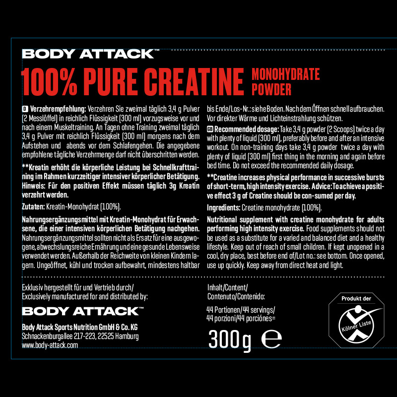 مکمل کراتین مونوهیدرات %100 بادی اتک حاوی کراتین مونوهیدرات خالص است و برای افزایش قدرت ، حجم و استقامت عضلات طراحی شده است . کراتین در عضلات به کراتین فسفات تبدیل شده و منبع انرژی فوری برای تمرینات کوتاه مدت و شدید را فراهم می کند . این محصول رشد عضلانی را پشتیبانی کرده و از تحلیل پروتئین عضلانی جلوگیری می کند . مصرف منظم آن ریکاوری پس از تمرین را تسریع کرده و ذخایر انرژی عضلات را بازسازی می کند . Body Attack Creatine Monohydrate با جذب سریع و حلالیت آسان ، افزایش عملکرد تمرینی و کاهش خستگی عضلانی را تضمین می کند .