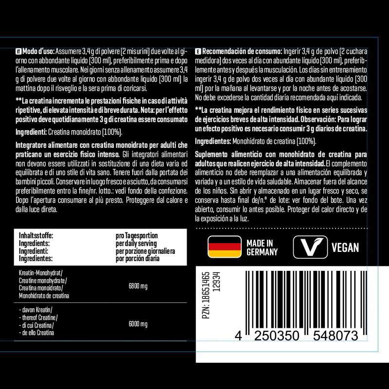| هر وعده ( 3.4 گرم ) دارای 6800 میلی گرم کراتین مونوهیدرات |