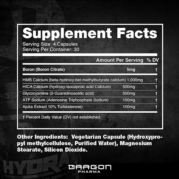 Hydra دراگون فارما یک محصول آنابولیک طبیعی و قدرتمند برای رشد عضلات و ریکاوری سریع است . این مکمل با ترکیبات فعال HMB ، Ajuga Turkestanica و Boron عملکرد عضلانی و سنتز پروتئین را تقویت می کند . Boron متابولیسم انرژی ، سلامت استخوانها و عملکرد مفاصل را بهبود می بخشد و در ترشح تستوسترون نقش دارد . HMB از تجزیه پروتئین عضلانی جلوگیری کرده و باعث کاهش درد و آسیب عضلانی پس از تمرین می شود . Ajuga Turkestanica سنتز پروتئین و قدرت عضلانی را نسبت به سایر اکدیستروئیدها تقویت می کند . گلوکزامین سلامت مفاصل و غضروف ها را حفظ کرده و حرکت پذیری آنها را بهبود می بخشد . مصرف هیدرا دراگون فارما با ایمنی طولانی مدت و افزایش انرژی ، انگیزه ورزشکاران را برای تمرینات حرفه ای و سبک زندگی فعال افزایش می دهد .