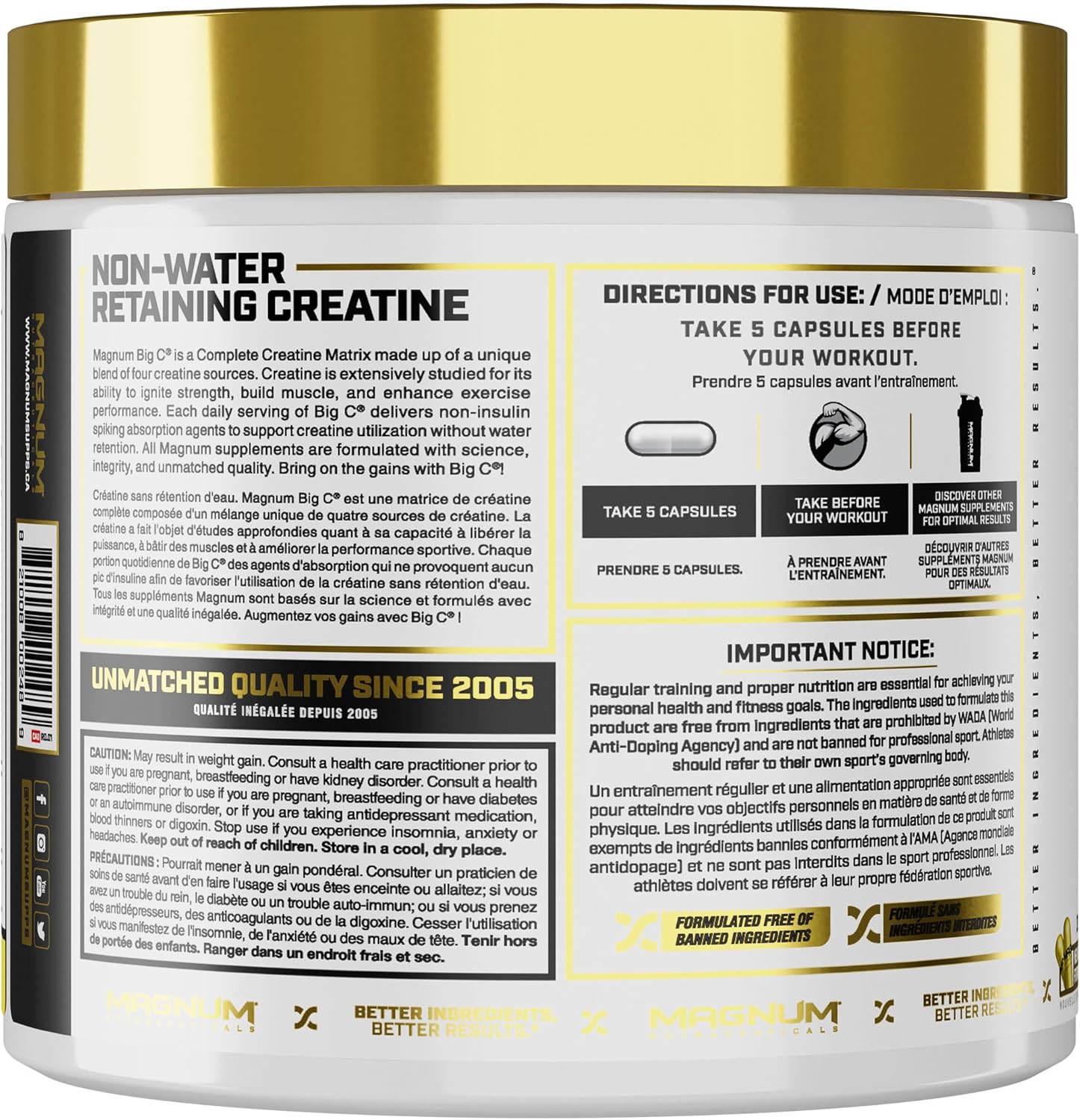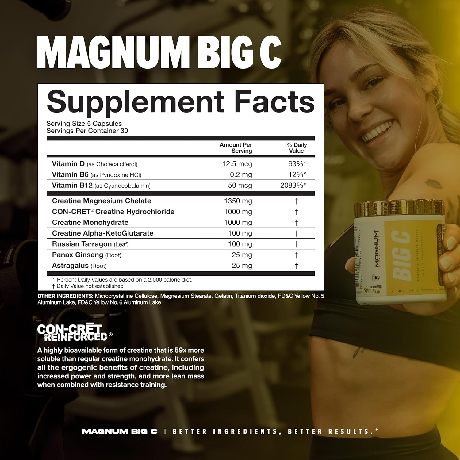 مکمل Magnum Big C با ترکیب چهار نوع کراتین شامل مونوهیدرات ، HCL ، منیزیم کلات و AKG برای بهبود جذب و عملکرد عضلانی طراحی شده است . کراتین مونوهیدرات با افزایش آب داخل سلولی ، قدرت عضلانی را تقویت می کند ، در حالی که HCL و منیزیم کلات جذب سریع تر و اثرگذاری بیشتری دارند . ترکیب AKG در کراتین Big C مگنوم از مشکلات گوارشی جلوگیری کرده و عملکرد روده را بهبود می بخشد . این محصول با افزایش انرژی ، استقامت و بهره وری در تمرینات مقاومتی ، رشد حجم عضلانی بدون چربی را تسریع می کند و ریکاوری پس از تمرینات شدید را بهبود می بخشد . Magnum Big C همچنین عملکرد مغز و تمرکز را ارتقا داده و برای ورزشکاران و افراد فعال که به دنبال افزایش قدرت و حجم عضلانی هستند ، ایده آل است .