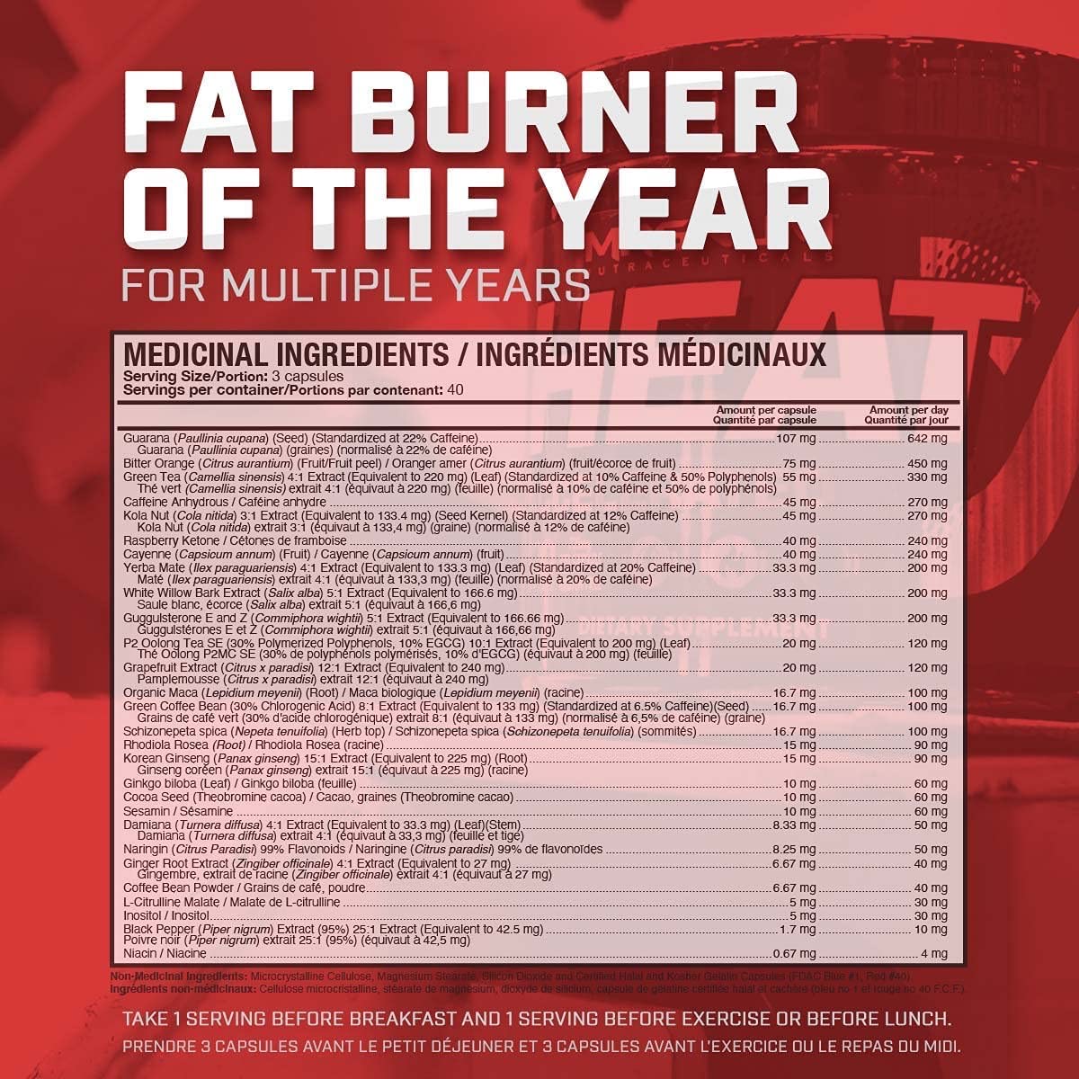 | هر وعده معادل 3 کپسول دارای 2 میلی گرم نیاسین ، 265 میلی گرم ترکیب آداپتوژن ، 685 میلی گرم ماتریس سرعت بخش ترموژنیک ، 25 میلی گرم نارینگین ، 210 میلی گرم ماتریس گردش لیپید ، 908 میلی گرم ترکیبات افزایش دهنده انرژی ( گوارانا ، برگ یربا ماته ، دانه قهوه سبز ، کافئین بی آب ) |