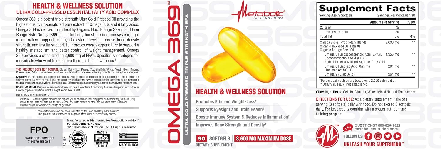 مکمل Metabolic Omega 369 محصولی از چربی های ضروری با ترکیب هم زمان اسیدهای چرب امگا 3 ، 6 و 9 است که از منابع طبیعی و با کیفیت شامل دانه کتان ارگانیک ، دانه گل گاوزبان و ماهی آزاد استخراج می شود . این محصول با اثر گذاری بر مسیرهای ضد التهابی ، از سلامت قلب و عروق حمایت کرده و به بهبود پروفایل چربی خون کمک می کند . امگا 369 متابولیک نقش موثری در حفظ سلامت مفاصل، استخوان ها و کاهش درد و آسیب عضلانی پس از فعالیت های ورزشی ایفا می کند . افزایش متابولیسم پایه ، کمک به کنترل وزن و ارتقای ریکاوری عضلانی از دیگر مزایای مکمل امگا 9 6 3 Metabolic محسوب میشود . این محصول با پشتیبانی از عملکرد مغز ، تمرکز ، حافظه و سلامت سیستم بینایی ، مکملی چند منظوره برای سلامت عمومی و ورزشی به شمار میآید . سافت ژل های با بلع آسان Omega 369 متابولیک ، استفاده از آن را ساده کرده و آن را به گزینه ای مناسب برای افراد با کمبود دریافت اسید های چرب ضروری تبدیل می کند .