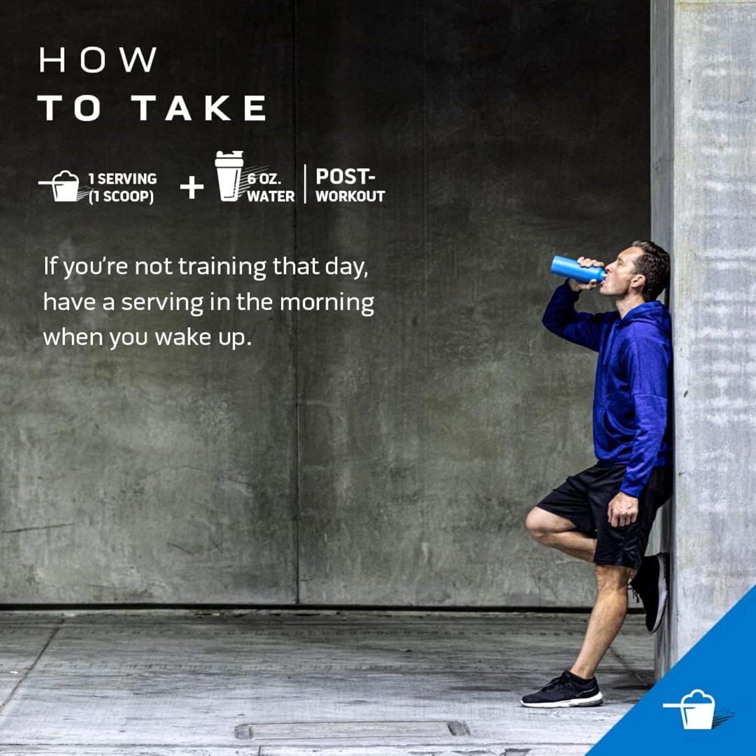 در روزهای تمرینی ، بلافاصله بعد از تمرینات ، 1 پیمانه از این مکمل را با 170 میلی لیتر آب ترکیب کرده و میل کنید . برای کسب نتایج بهتر می توانید 2 پیمانه را با 350 میلی لیتر آب مصرف کنید . در روزهای غیر تمرینی نیز همین مقدار را هنگام صبح که از خواب بیدار می شوید میل کنید .