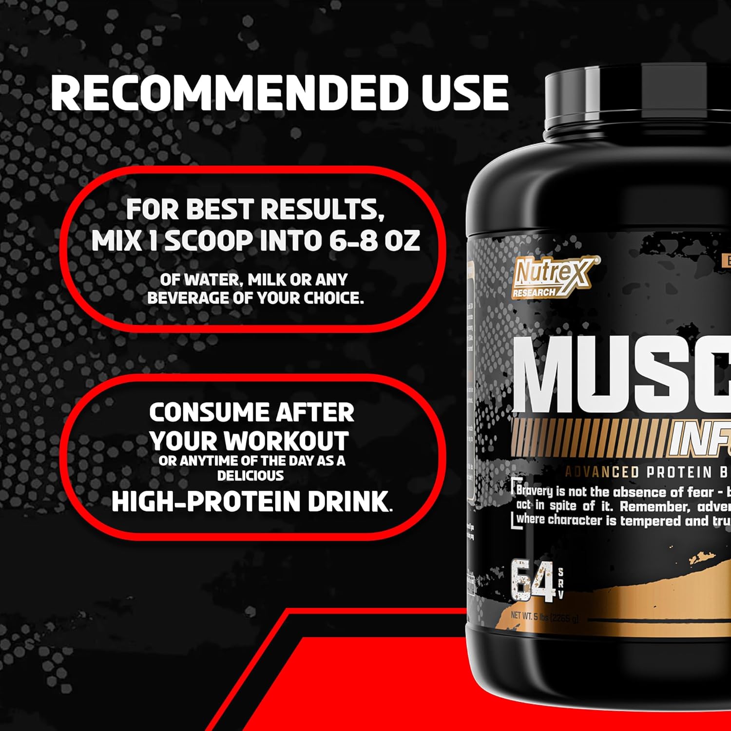 مکمل Muscle Infusion نوترکس یک پودر پروتئین وی پیشرفته است که برای افزایش حجم عضلات ، بهبود ریکاوری سریع و ارتقای عملکرد ورزشی طراحی شده است . این محصول علاوه بر پروتئین وی کنسانتره و ایزوله ، پروفایل کامل اسید های آمینه ضروری ( EAA ) و شاخهای ( BCAA ) را ارائه می دهد و سنتز پروتئین عضلات را تحریک می کند . فرمول زود هضم و متوسط Nutrex Muscle Infusion آزادسازی پایدار اسیدهای آمینه را تضمین می کند . پروتئین ماسل اینفیوژن ناترکس مناسب ورزشکاران حرفه ای ، بدنسازان و افراد فعال در دوره های حجم و خشک است که به دنبال عضله سازی سریع و ریکاوری بهینه هستند .