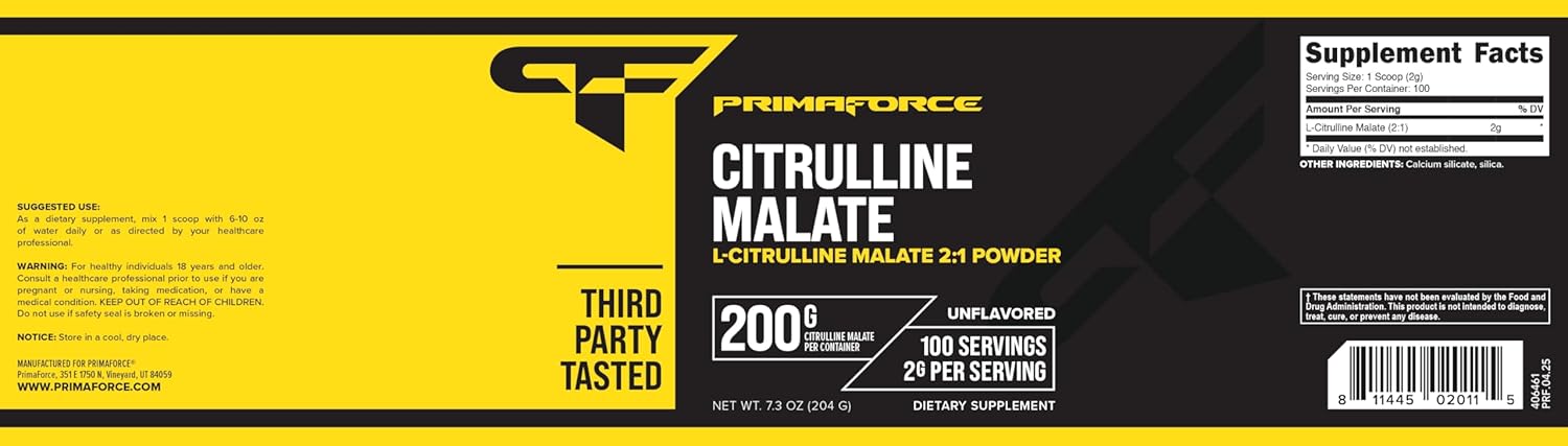 سیترولین مالات یک اسید آمینه ترکیبی از ال سیترولین و مالات است که موجب افزایش تولید آرژنین و نیتریک اکسید می شود و در نتیجه پمپ عضلانی و جریان خون عضلات اسکلتی بهبود می یابد . Citrulline Malate پریمافورس با 2 گرم سیترولین مالات در هر وعده ، با افزایش ظرفیت هوازی ، استقامت ورزشکاران را ارتقا می دهد و ریکاوری عضلات و کاهش خستگی پس از تمرینات شدید را تسهیل می کند . سیترولین مالات پریمافورس همچنین با تحریک ترشح هورمون رشد ، به رشد و ترمیم بافت های عضلانی کمک می کند . مصرف این مکمل باعث افزایش توان و انرژی تمرینی ، بهبود عملکرد استقامتی و رشد توده عضلانی می شود . Primaforce Citrulline Malate تحت آزمایشات خلوص و قدرت قرار گرفته و از مواد با کیفیت بالا تولید شده است و برای ورزشکاران ، بدنسازان و افرادی که به دنبال استقامت بالا ، عملکرد بهینه و رشد عضلانی بدون چربی هستند ، ایده آل می باشد .