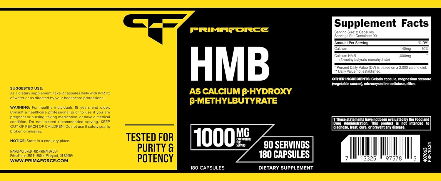 HMB زمانی تولید می شود که بدن لوسین را تجزیه می کند ، یک آمینو اسید شاخه دار که برای سنتز پروتئین و ترمیم عضلات حیاتی است . مکمل اچ ام بی پریمافورس با 1000 میلی گرم HMB در هر وعده به رشد و افزایش حجم عضلات بدون چربی کمک می کند و توان و قدرت ورزشکار را ارتقا می دهد . HMB پریمافورس با مهار مسیر های کاتابولیک و آنزیم های تجزیه پروتئین ، آسیب عضلانی را کاهش داده و ریکاوری پس از تمرینات هوازی و بیهوازی را تسهیل می کند . مصرف این محصول انرژی تمرینی را افزایش داده و خستگی عضلانی را کاهش می دهد . PrimaForce HMB دارای فرمول غیر GMO ، بدون گلوتن و آزمایش شده برای خلوص و قدرت است و برای ورزشکاران ، بدنسازان و افرادی که به دنبال افزایش توده عضلانی ، قدرت و عملکرد بهینه تمرینی هستند ، ایده آل می باشد .