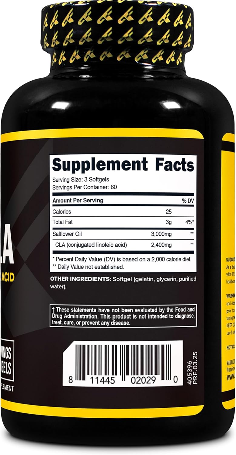 | هر3 کپسول دارای 25 کالری ، 2.5 گرم چربی ، 3000 میلی گرم روغن گلرنگ ، 2400 میلی گرم CLA |