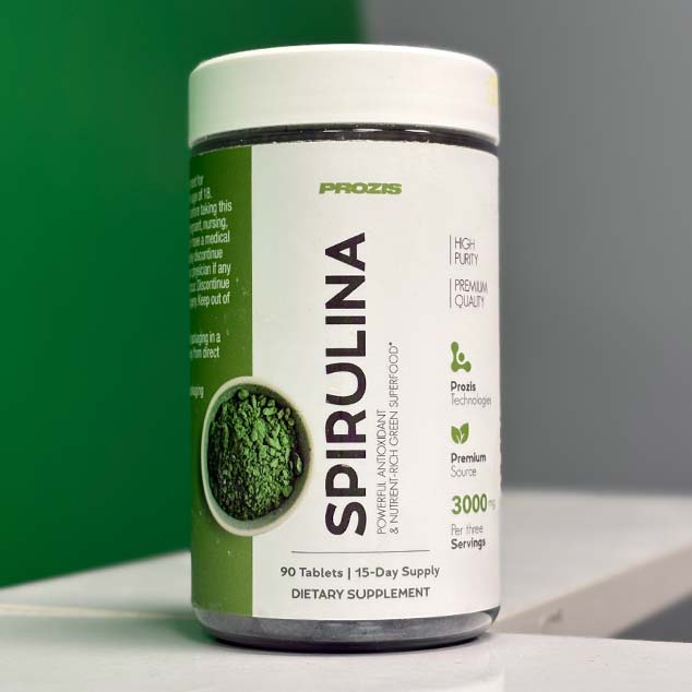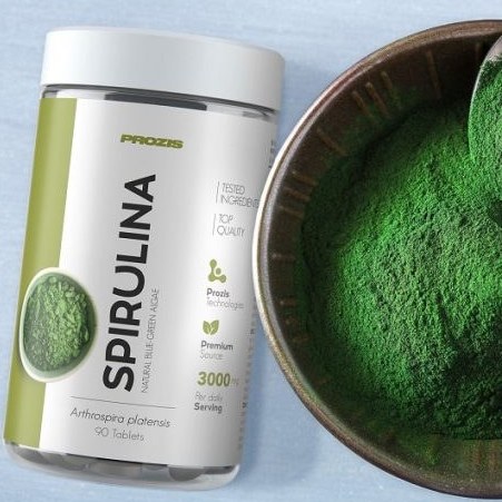 اسپیرولینا یک جلبک طبیعی و سبز آبی است و دارای طیف قابل توجهی از مزایای تغذیه ای می باشد . اسپیرولینا پروزیس دارای دو گونه Arthrospira maxima و Arthrospira platensis است که سرشار از پروتئین ، آهن ، منیزیم ، کلسیم ، پتاسیم و ویتامین های A، B6، K و فولات می باشد . این محصول با دارا بودن فیکوسیانین و ترکیبات آنتی اکسیدانی و ضد التهابی ، سیستم ایمنی را تقویت کرده ، رادیکال های آزاد را خنثی کرده و به کاهش چین و چروک پوست کمک می کند . مصرف Prozis Spirulina موجب افزایش انرژی ، استقامت و تحمل در تمرینات شدید می شود و به کاهش خستگی و بهبود عملکرد عضلات کمک می کند . همچنین با ایجاد احساس سیری و تنظیم فشار خون ، نقش مؤثری در کنترل وزن و سلامت قلب دارد . اسپرولینا Prozis برای ورزشکاران ، افراد فعال و کسانی که به دنبال یک رژیم غذایی سالم و متعادل هستند ، مناسب است .