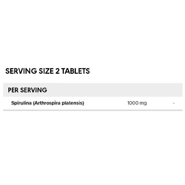 | هر 2 قرص دارای 1000 میلی گرم اسپیرولینا |