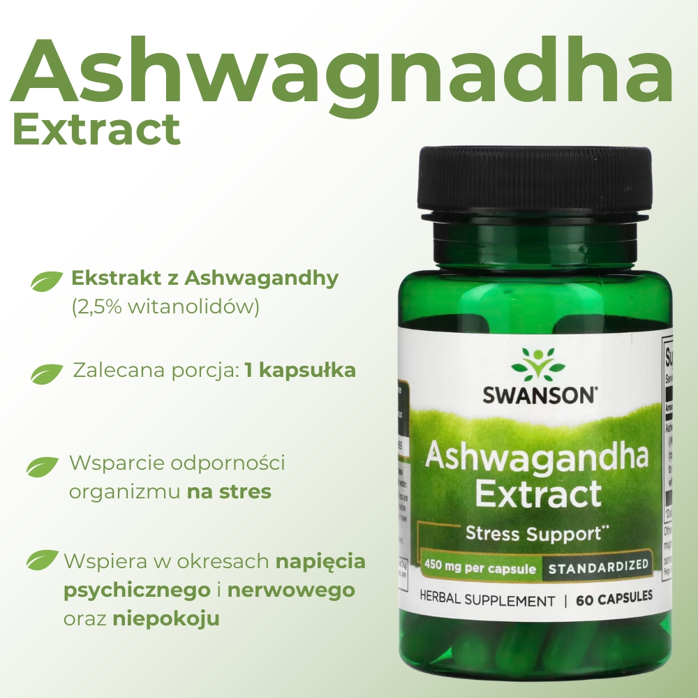 آشوگاندا گیاهی آداپتوژن و پرکاربرد در طب آیورودا است که با تنظیم پاسخ بدن به استرس ، تعادل هورمونی و عملکرد عصبی را بهبود می بخشد . مکمل Swanson Ashwagandha Extract حاوی 450 میلی گرم عصارهی استاندارد شده ریشه آشوگاندا با %2.5 ویتانولیدها است که نقش مهمی در افزایش انرژی ، بهبود تمرکز ، قدرت عضلانی و عملکرد مغزی دارند . این ترکیب با کاهش سطح کورتیزول ، به مقابله با اضطراب و خستگی مزمن کمک می کند و در عین حال باعث بهبود خواب شبانه می شود . آشوگاندا Swanson با افزایش سطح تستوسترون و تقویت باروری در مردان ، انتخابی ایده آل برای ورزشکاران و افراد فعال است . خاصیت آنتی اکسیدانی و ضد التهابی قوی این محصول نیز از سلول ها در برابر آسیب اکسیداتیو محافظت می کند و سلامت عمومی بدن را ارتقا می دهد .