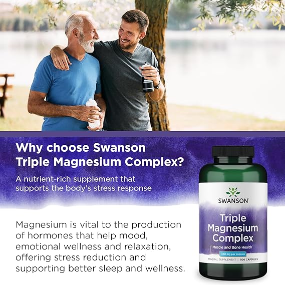 مکمل Swanson Triple Magnesium Complex ترکیبی علمی از سه فرم مؤثر منیزیم سیترات ، اکسید و آسپارتات است که هر کدام جذب و عملکرد متفاوتی دارند و در کنار هم بیشترین اثر را بر سلامت عضلات ، سیستم عصبی و استخوان ها می گذارند . منیزیم نقش کلیدی در تنظیم انقباض عضلات ، سنتز پروتئین ، تولید ATP و حفظ تعادل الکترولیتی بدن دارد . منیزیم سیترات در Triple Magnesium Complex سوانسون جذب بالایی داشته و برای بهبود عملکرد گوارشی مفید است . اکسید منیزیم اثر آنتی اسیدی دارد و در رفع سوءهاضمه مؤثر است و آسپارتات منیزیم نیز با افزایش انرژی سلولی ، خستگی عضلانی را کاهش می دهد . کمپلکس منیزیم تریپل سوانسون با کاهش اسپاسم ، بهبود خلق و خو، تسکین میگرن و افزایش تمرکز ذهنی شناخته می شود و مصرف منظم آن پایه ای قوی برای تقویت سلامت عمومی و عملکرد ورزشی ایجاد می کند .