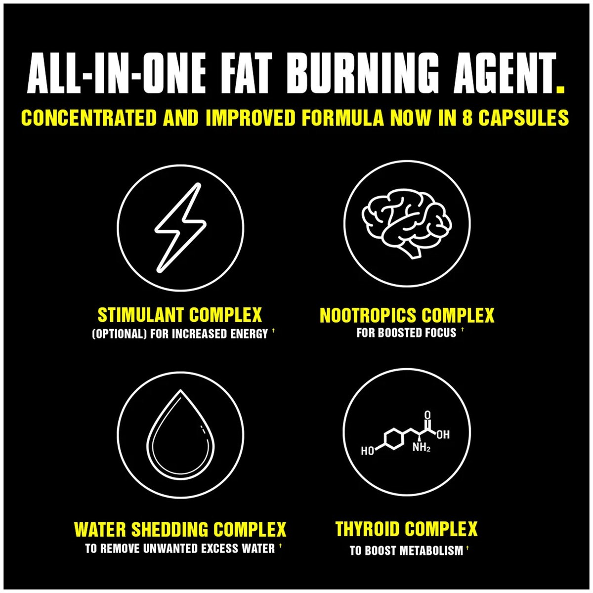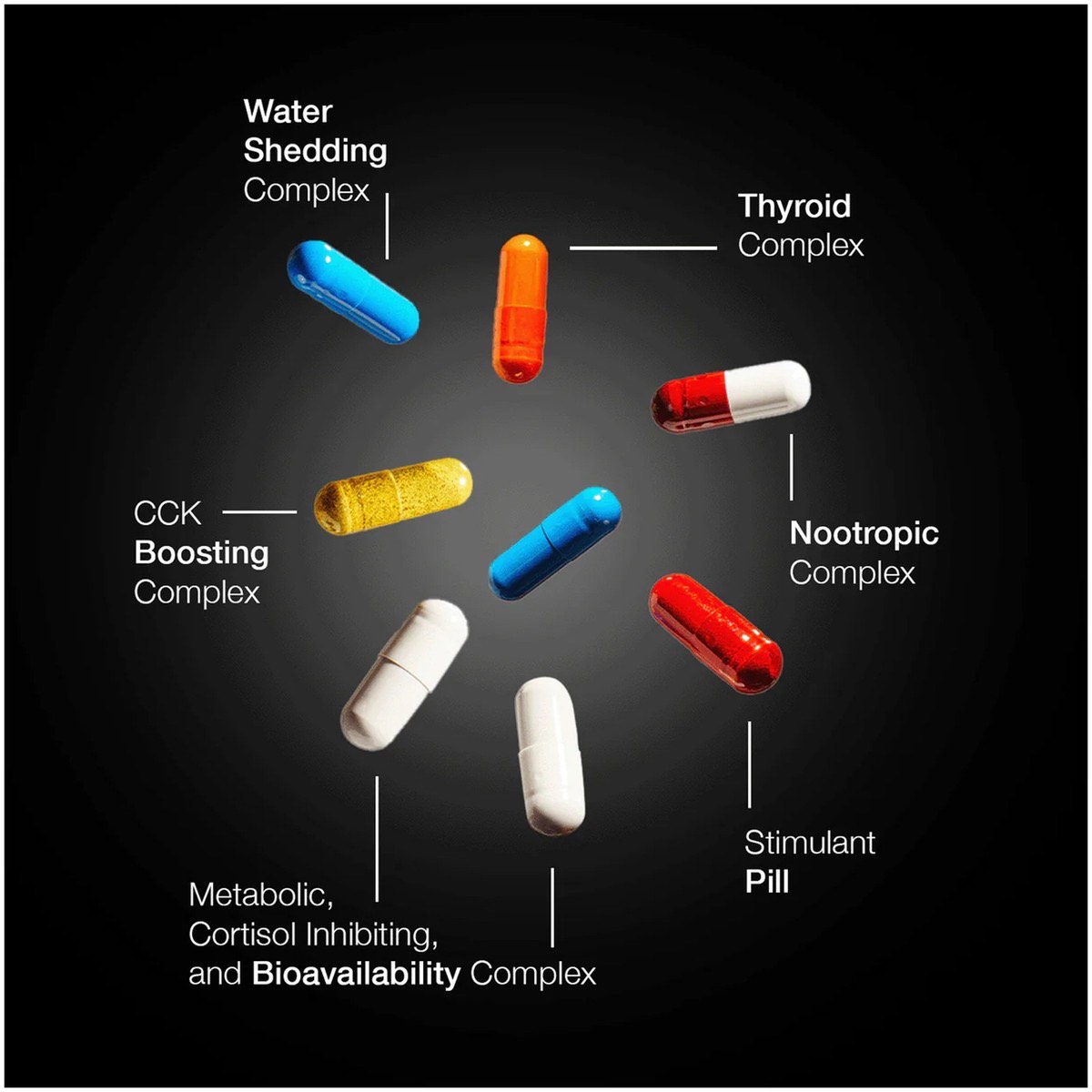 | هر وعده ( 1 بسته ) دارای 750 میلی گرم کمپلکس محرک ( کافئین بی آب ، گوارانا ، یربا ماته ، دانه کولا ، کتون تمشک ، کولئوس فورسکولین و Evodiamine ) و 750 میلی گرم کمپلکس متابولیک ، 350 میلی گرم کمپلکس تیروئید و 800 میلی گرم کمپلکس Water Shedding و 500 میلی گرم کمپلکس نوتروپیک ، 300 میلی گرم کمپلکس بازدارنده کورتیزول ، 300 میلی گرم کمپلکس تقویت CCK و 500 میلی گرم کمپلکس Bioavailability |