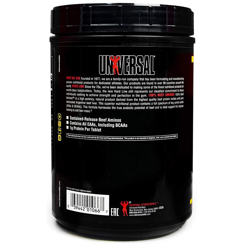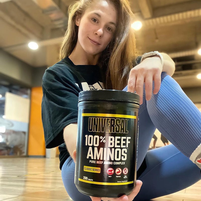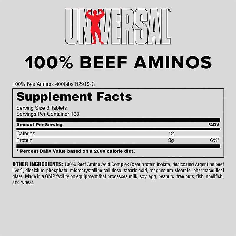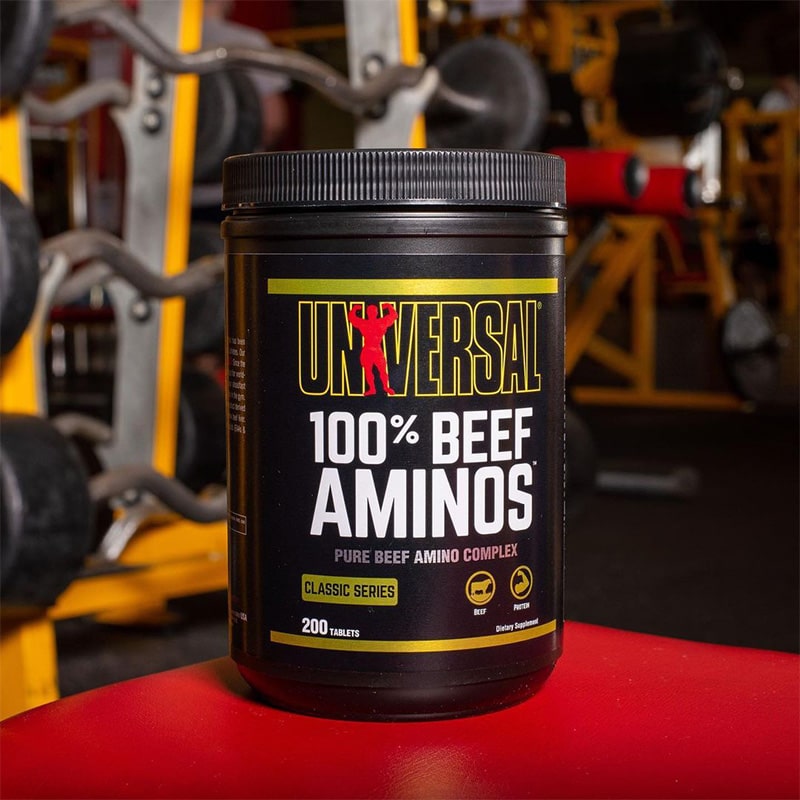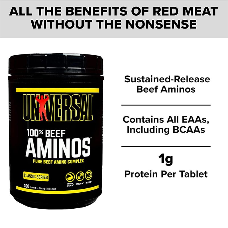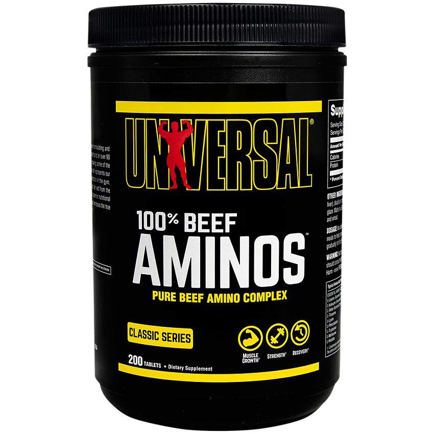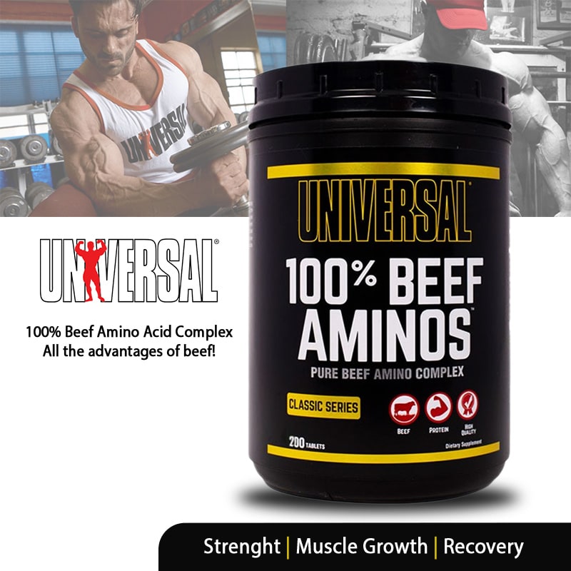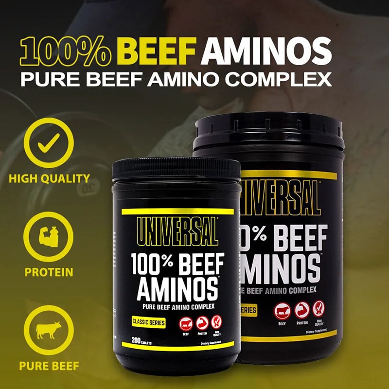 مکمل Universal 100% Beef Aminos یک محصول پروتئینی طبیعی و مشتق شده از گوشت گاو ، کنسانتره آلبومین و گوشت کبد گاو است . این محصول حاوی طیف کاملی از اسید های آمینه کلیدی شامل EAAs و BCAA می باشد و به سنتز پروتئین عضلانی کمک می کند . با مصرف آمینو بیف %100 یونیورسال رشد توده عضلانی بدون چربی تسریع شده و استقامت و قدرت عضلات افزایش می یابد . آمینو بیف یونیورسال همچنین ریکاوری بعد از تمرینات شدید را بهبود می بخشد و آنابولیسم را تقویت می کند ، در حالی که کاتابولیسم کاهش می یابد . منبع پروتئینی این محصول برای حفظ سلامت استخوان ها مفید است و مصرف آسان آن جایگزین سریع و طبیعی وعده های گوشتی محسوب می شود . آمینو بیف %100 Universal برای بدنسازان و ورزشکاران حرفهای طراحی شده و ترکیبی علمی برای افزایش عملکرد عضلانی ارائه می دهد .