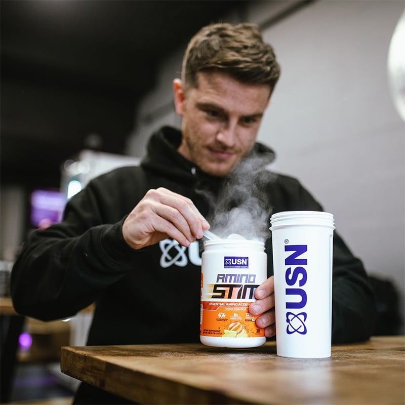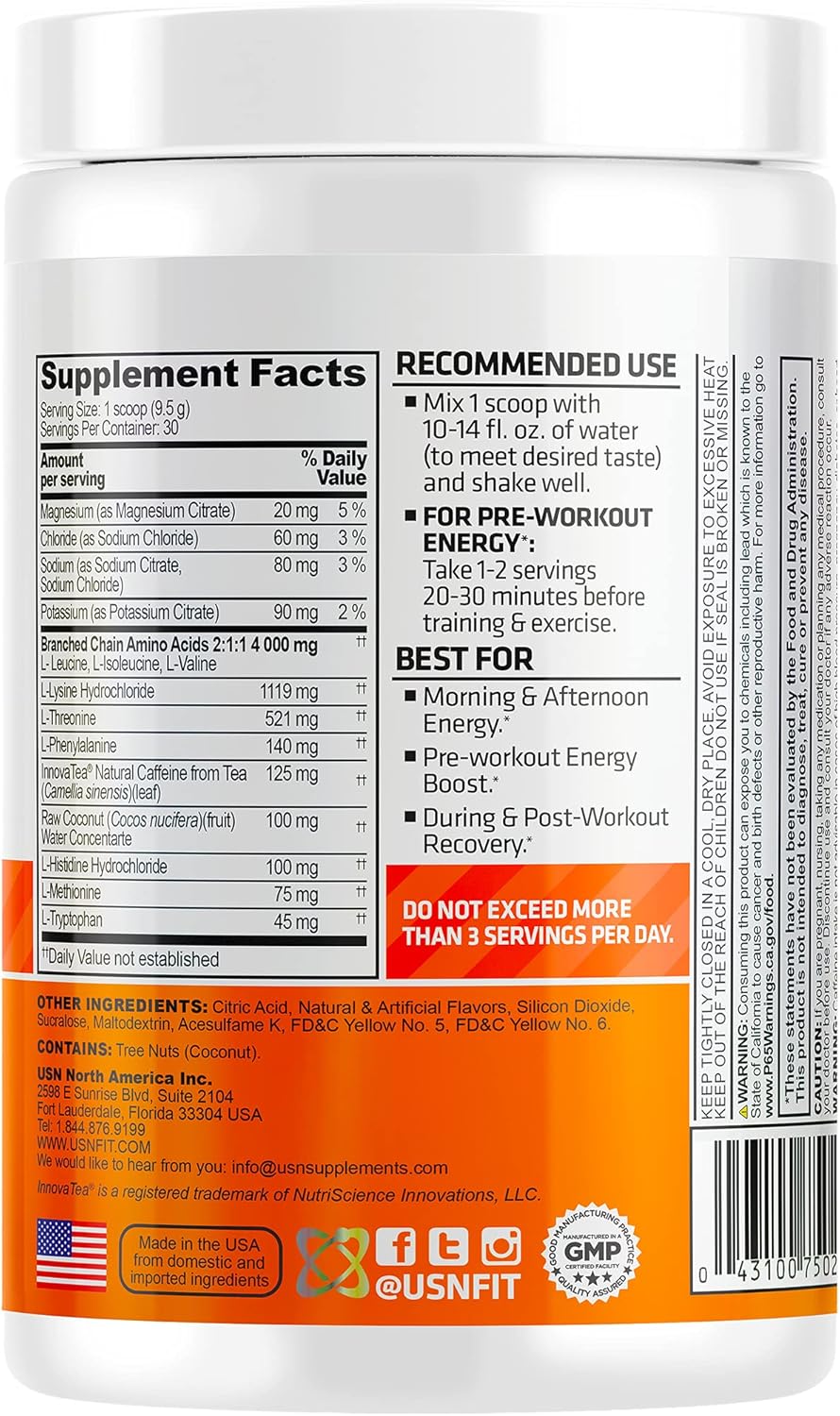 مکمل USN Amino Stim یک پودر اسید آمینه ضروری با BCAA، EAA و کافئین طبیعی InnovaTea است که برای افزایش انرژی و استقامت عضلانی طراحی شده است . این محصول دارای الکترولیت ها و آب نارگیل بوده و به حفظ هیدراتاسیون و بهبود عملکرد تمرینی کمک می کند . Amino Stim یو اس ان بازسازی سریع عضلات و افزایش تمرکز حین تمرین را تسهیل می کند و انرژی پایدار بدون تحریک بیش از حد ارائه می دهد . آمینو استیم یو اس برای ورزشکاران و بدنسازانی که به دنبال افزایش استقامت ، عملکرد عضلانی و ریکاوری سریع هستند ، ایده آل است .