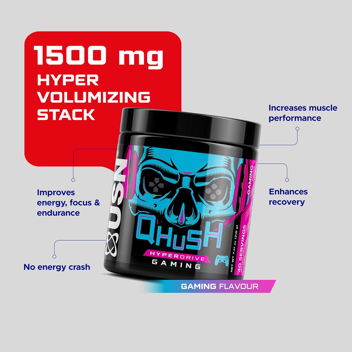 مکمل USN Qhush Hyperdrive یک محصول پیش تمرین قدرتمند است که انرژی ، قدرت و استقامت عضلانی شما را در تمرینات طولانی و شدید افزایش می دهد . این محصول با 150 میلی گرم کافئین و ترکیب Dynamine ، اثرات انرژی را طولانی تر می کند و تمرکز ذهنی را بهبود می بخشد . ترکیب سیترولین مالات ، پودر گلیسرول و آگماتین سولفات در هایپر درایو هاردکور یو اس ان جریان خون و پمپ عضلانی را تقویت کرده و باعث افزایش استقامت عضلات می شود . Hyperdrive یو اس ان تمرینات سخت را کارآمدتر کرده و خستگی پس از تمرین را کاهش می دهد . این محصول بر اساس تحقیقات علمی طراحی شده و مناسب ورزشکاران حرفه ای و بدنسازان است که به دنبال بهبود عملکرد ، انرژی و ریکاوری هستند .